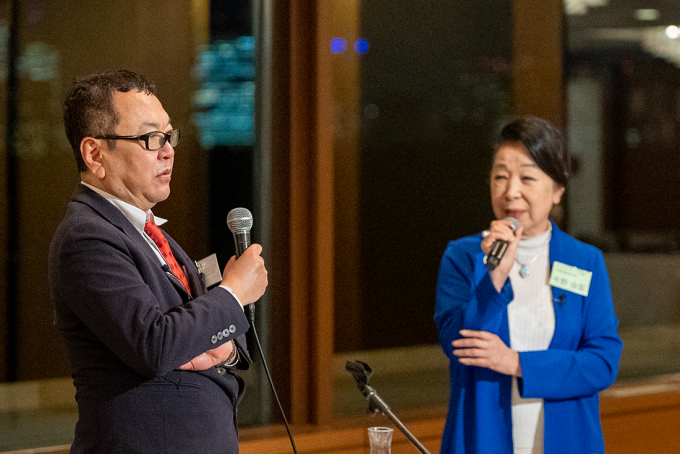 対談では、和田氏の勧める前頭葉への効果的な刺激の与え方である〝チャレンジする〟を体現してきた今野社長の、コロナ鬱になった友人に喝を入れたエピソードが披露されるなど、今野流の若さを持続する秘訣の一端も垣間見ることが出来ました。その後の懇親会では、美味しい料理を楽しみながら、おなじみの会員様と初めて参加のお客様が、談笑する姿を見かけるなど、終始和やかな雰囲気の4月例会となりました。